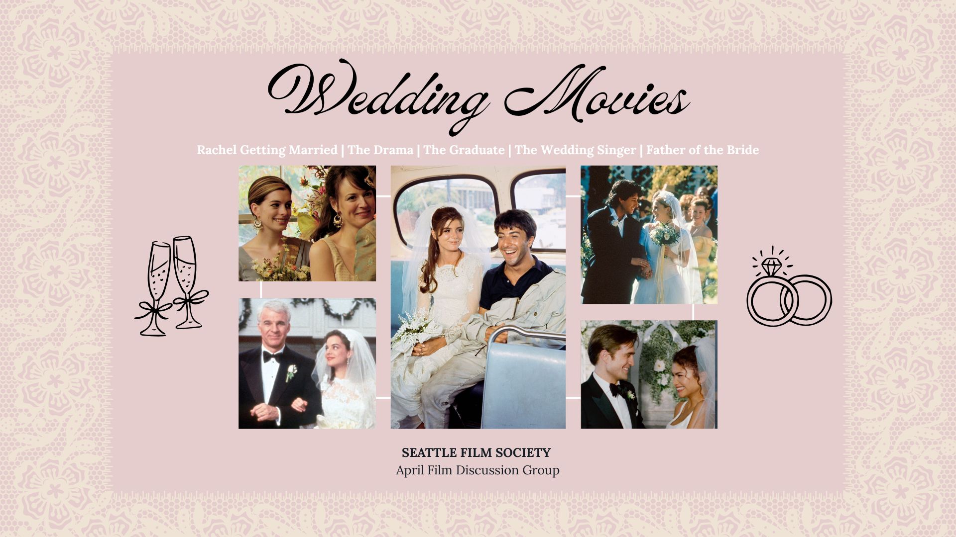 Bells are ringing this April! Our Film Discussion Group is talking all things weddings with five discussions on the ups and downs of nuptials on screen. Our Field Trip this month will be to see the new A24 pic THE DRAMA (exact showtimes pending). The remaining schedule includes: