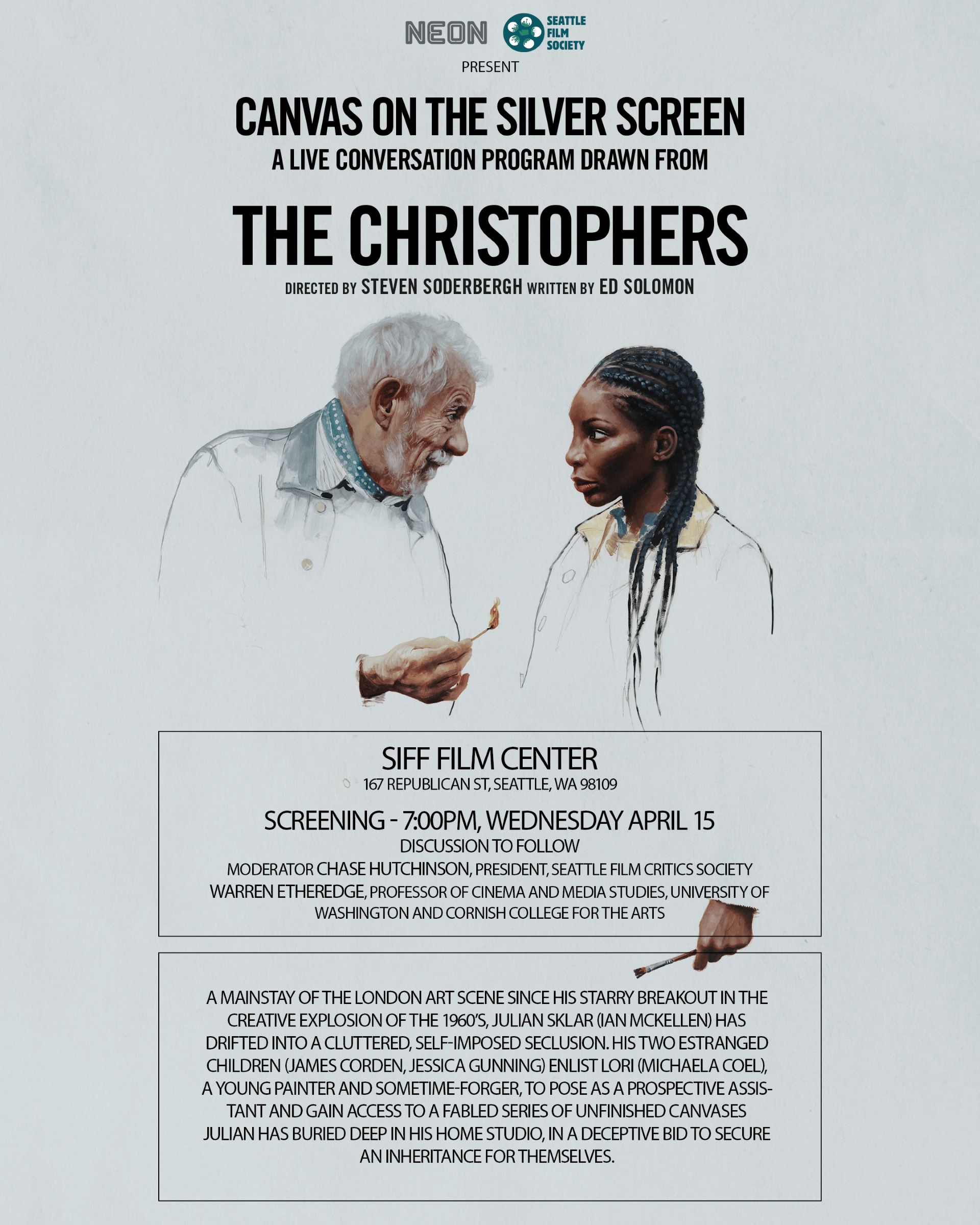 Seattle Film Society is proud to partner with NEON to present a Free screening of Steven Soderbergh’s new movie, THE CHRISTOPHERS, followed by a panel discussion about the film, featuring:
